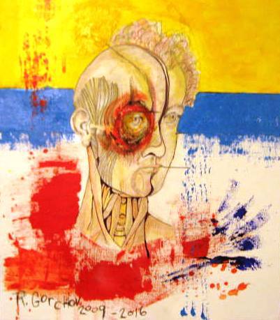 Title 'lady with bird' Medium acrylic, water color, ink,pencil on canvasette paper Size 16 x 20 inches