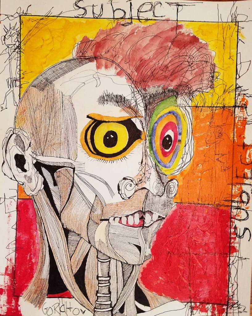 I’m a self-taught artist and have been drawing and painting for nearly 40 years. I’m interested in the process that creates a painting. Though it involves imagination, this process is affected by chance, so that when I begin a picture I have only a half-formed image of what the finished painting will look like. The completed piece only slightly resembles the image that I had in mind when I began it. I think of this as improvisation. Over the years that I’ve been painting, I’ve learned to trust the brush and the materials – to let them take the lead – and not think too much about how it will end up.